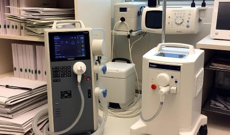 Gestão de tecnologias em saúde, englobando operação e manutenção de equipamentos.